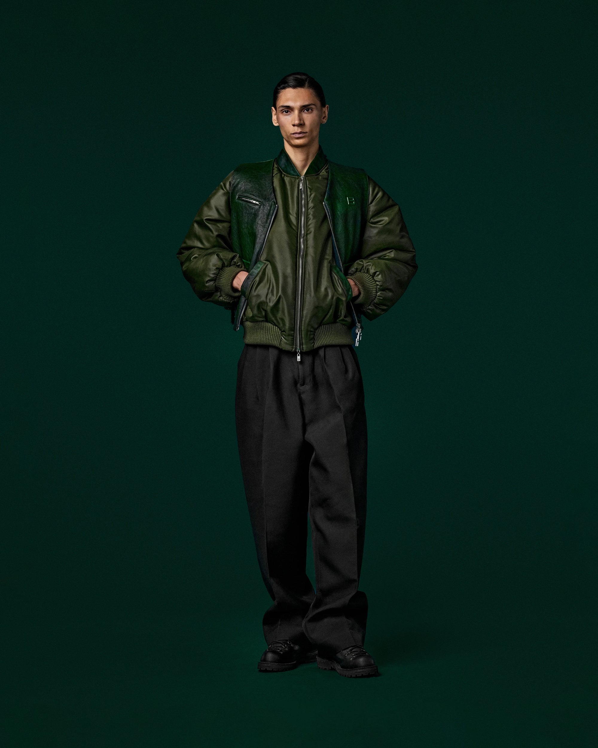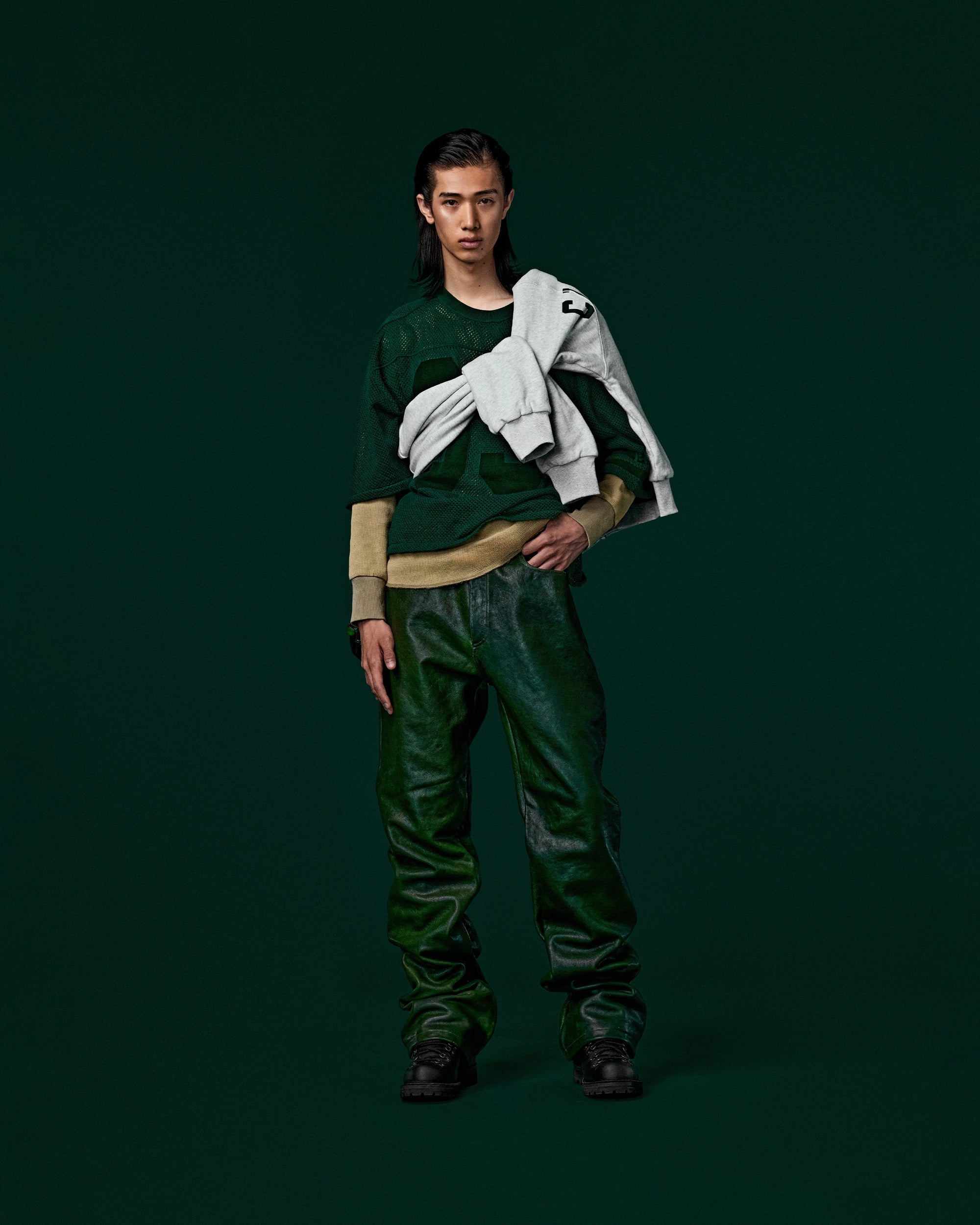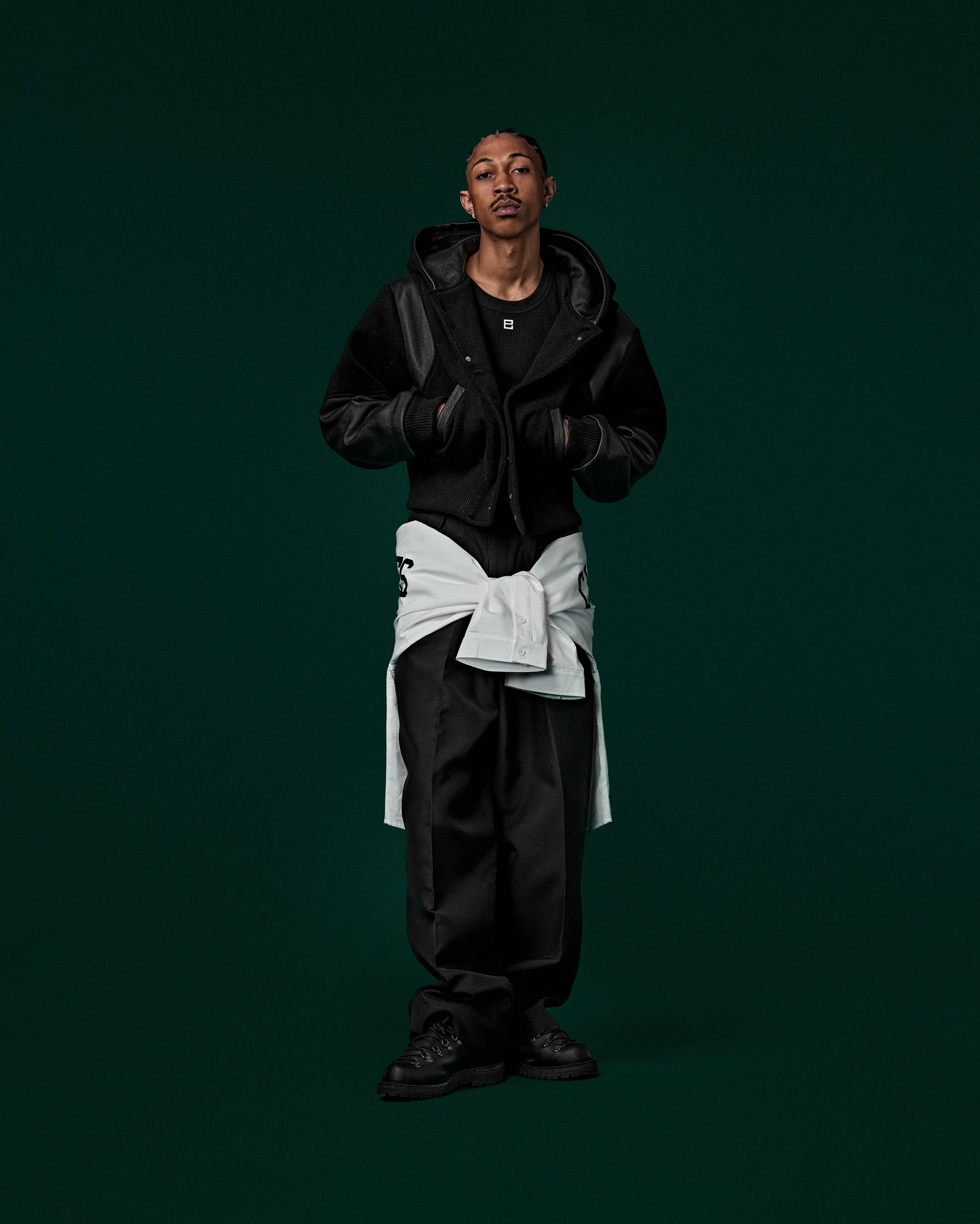 Drawing inspiration from Japanese workwear, military attire, vintage biker aesthetics, American preppy style, and vintage sportswear, LUU has crafted a collection that blends diverse cultural influences. The collection is dominated by bold lettering inspired by American letterman designs, showcased on knitwear and jersey, and creatively adapted to more conceptual pieces. Central to this collection is the use of Jade stone, a significant element in Edmond’s Asian heritage.